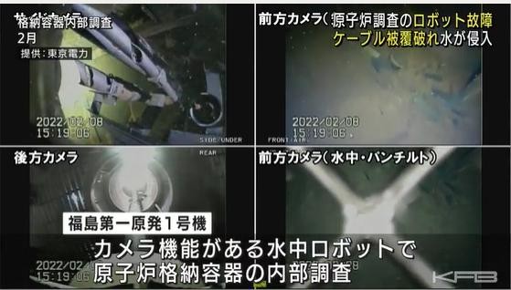 据日本KFB福岛放送电视台15日消息,检测福岛第一核电站1号机组情况的水下机器人此前发生故障,故障原因已查明,为线路破损导致机器人进水。