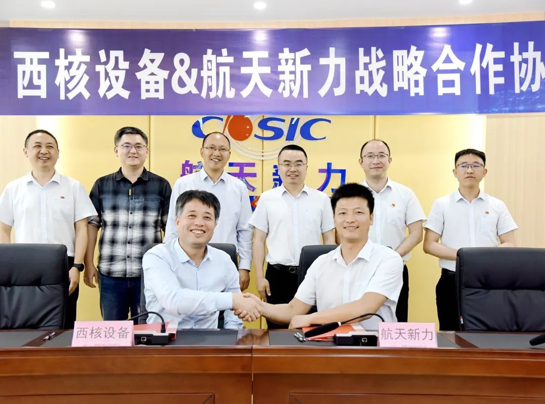 5月4日,西核设备与贵州航天新力科技有限公司(以下简称航天新力)在贵州遵义签订战略合作协议。西核设备党委副书记、总经理丁正彪,副总经理马立鹏,航天新力党委书记、董事长赵和安,总经理葛阳,副总经理唐伟等参加签约仪式并就推进双方战略合作进行业务交流。