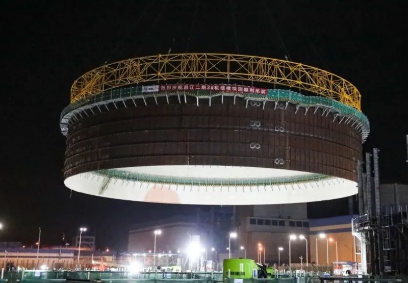 2023年8月13日凌晨2点58分,随着300T履带吊钩头缓缓降落,至此全球首堆“玲龙一号”常规岛主行车就位一级里程碑节点按期完成,标志着“玲龙一号”常规岛工程正式进入安装阶段。