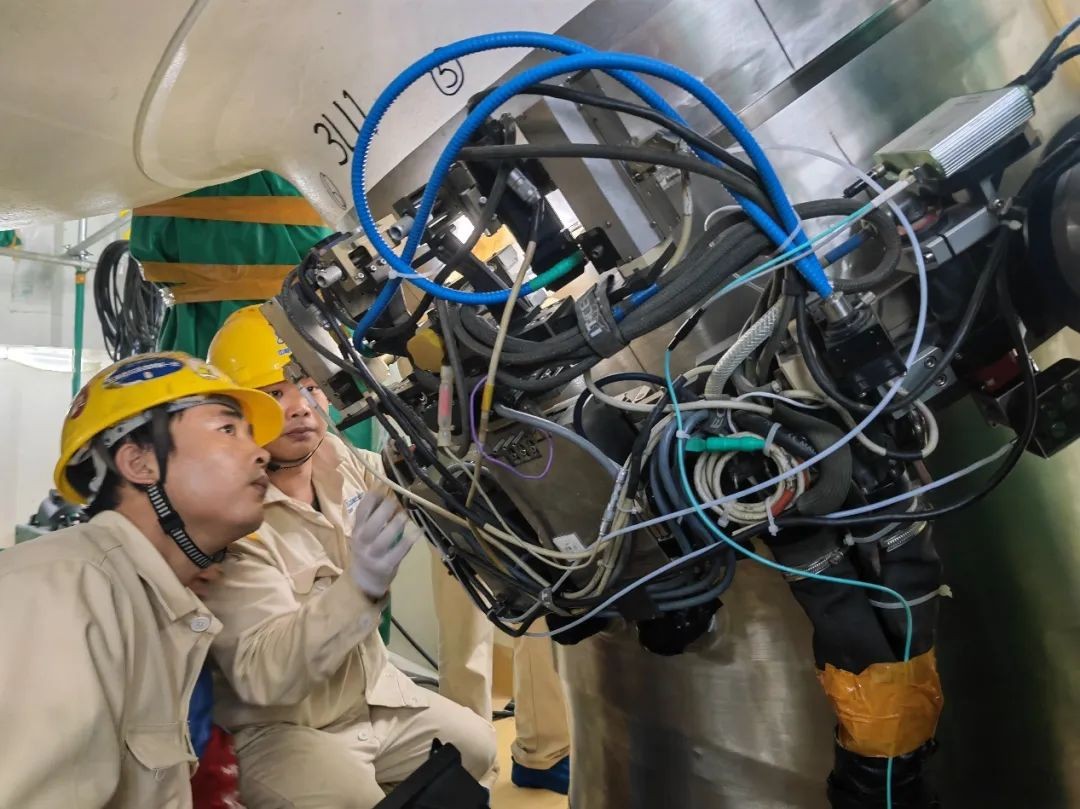2023年12月05日,海南昌江核电二期4号机组首个“华龙一号”不锈钢衬里与混凝土结构一体化模块——非能动堆腔注入水箱(CIS)顶板整体吊装顺利完成。整个吊装过程平稳有序、安全高效,最终与CIS水箱模块三精准对接,本次吊装的顺利进行,为后续4号机组反应堆厂房穹顶吊装里程碑节点奠定了坚实基础。
