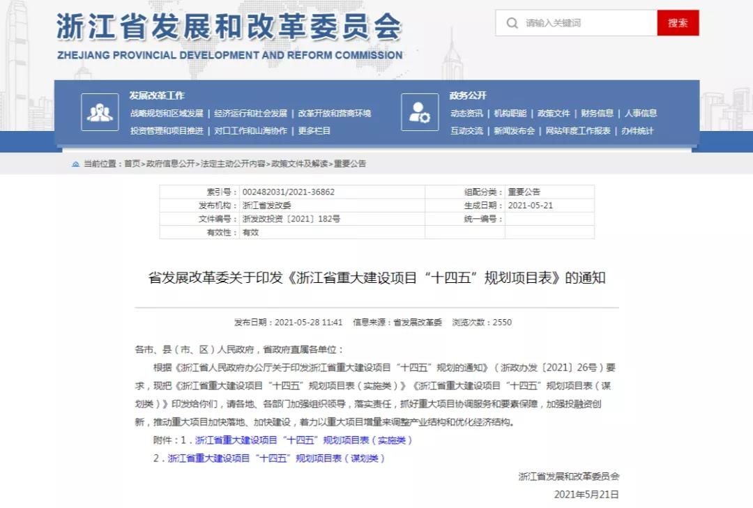 涉及4个核电项目!浙江省重大建设项目“十四五”规划项目表发布