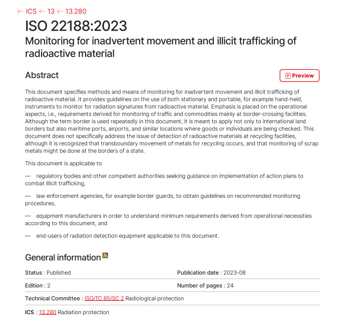近日,中核集团主导修订的国际标准ISO 22188:2023《放射性物质非故意转移和非法运输的监测》正式发布。