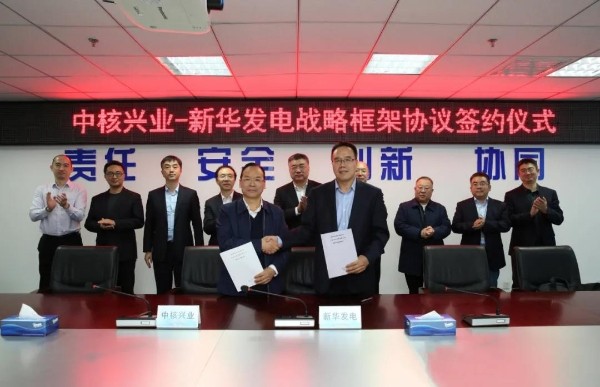 日前,中核兴业控股有限公司与新华水力发电有限公司(简称新华发电)举行战略合作协议签约仪式。公司党委书记、董事长张伟,新华发电党委书记、董事长张焰出席会议。公司总经理、党委副书记常万仓,新华发电总经理、党委副书记李彦坡分别代表两方签约。