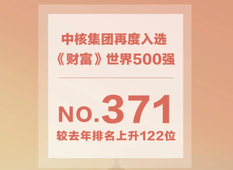 北京时间8月2日,美国《财富》杂志公布最新一期世界500强排名,中核集团再度入选,位列第371位,排名较去年大幅上升122位。