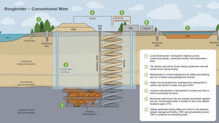 总部位于德克萨斯州科珀斯克里斯蒂的铀能公司(UEC)近日公布了其位于萨斯喀彻温省北部的铀矿项目——Roughrider的初步经济评估报告摘要。该报告预计,在九年的地下作业中,该项目将生产6120万磅U3O8(相当于23,540吨铀)。UEC于2022年以1.5亿美元的价格从力拓手中收购了Roughrider项目。此次更新的SK 1300技术报告摘要显示,指示类别的总资源量为2786万磅U3O8,平均品位为1.81% U3O8;推断类别的总资源量为3338万磅U3O8,平均品位为2.45% U3O8。...
