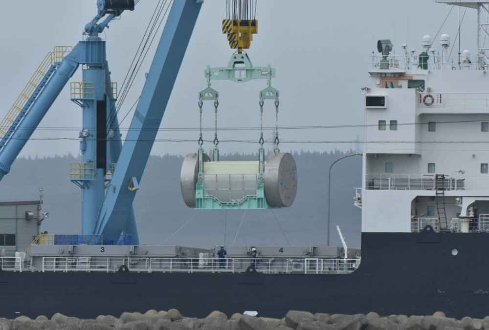周四上午,一艘载有核燃料的货船停靠青森县的一个临时储存设施,并在附近港口卸下第一批乏核燃料,该设施可能很快就会接收这批燃料。