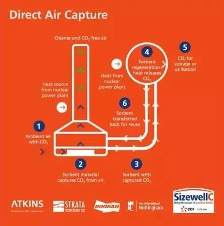 英国塞兹韦尔核电站(Sizewell C)公司与诺丁汉大学、Strata Technology、Atkins和Doosan Babcock等公司的顶尖工程师和碳捕获专家合作,研发由核电站提供动力直接空气捕获(Direct Air Capture ,DAC)示范项目,获得了政府“净零创新投资计划”的资助。