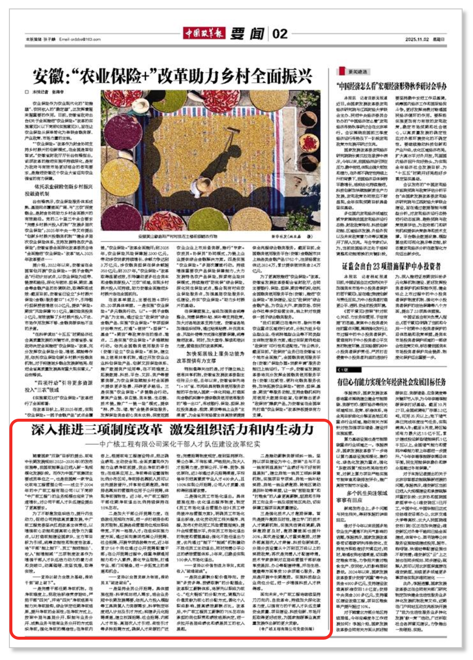 近日,《中国改革报》以《深入推进三项制度改革 激发组织活力和内生动力》为题,聚焦报道中广核工程有限公司深化干部人才队伍建设改革情况。在国家双碳目标和核电规模化发展背景下,中广核工程以三项制度改革为突破口,推动干部能上能下、员工能进能出、收入能增能减,激发组织活力与内生动力,为助力国家能源事业高质量发展提供实践样本。全文如下深入推进三项制度改革 激发组织活力和内生动力——中广核工程有限公司深化干部人才队伍建设改革...