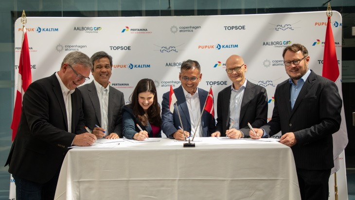 四家丹麦公司--哥本哈根原子公司、奥尔堡CSP公司、阿法拉伐公司和托普索公司--已经与印度尼西亚氨气生产商Pupuk Kalimantan Timur(PKT)以及Pertamina New & Renewable Energy公司签署了一份谅解备忘录,调查在东加里曼丹省婆罗洲岛东海岸的Bontang市建设一座设施。