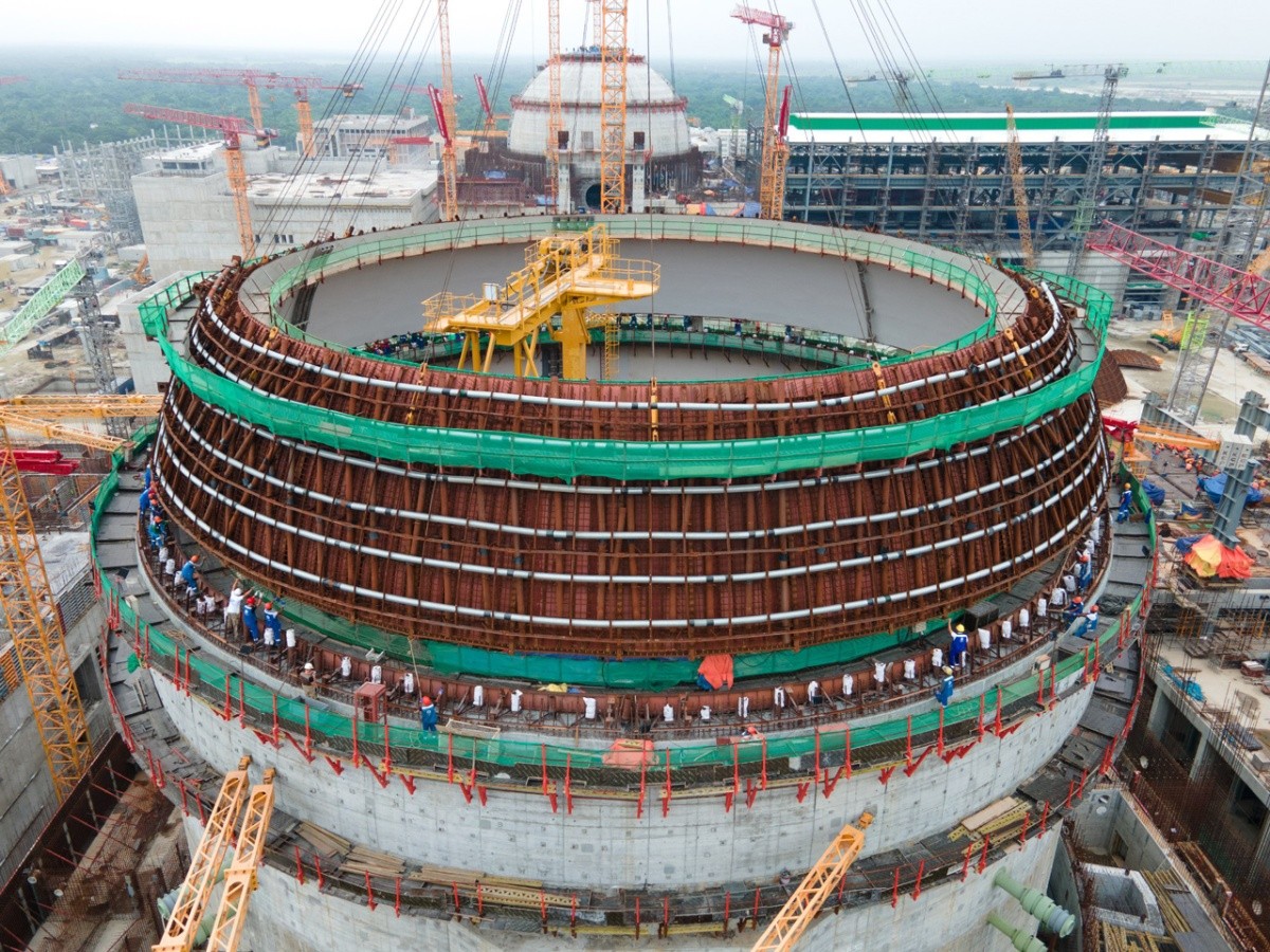 2021年12月24日,孟加拉国卢普尔核电厂(Rooppur NPP)2号机组完成了反应堆厂房第五层内层安全壳混凝土浇筑。