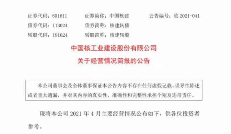 据中国核建公告显示其子公司中国核工业华兴建设有限公司与中广核工程有限公司签署广东陆丰核电厂 5、6 号机组核岛土建工程合同,合同金额 40.96 亿元。