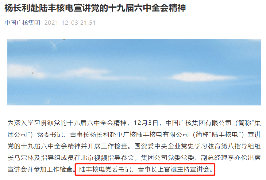 上官斌任陆丰核电党委书记、董事长