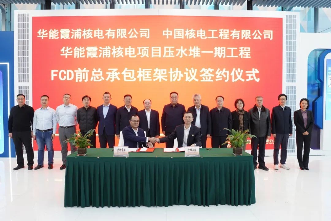2024年1月18日,在中国核工业集团党组成员、副总经理申彦锋,中国华能集团党组成员、副总经理张涛,及华能核电开发有限公司党委书记、总经理潘风国的见证下,中国核电工程有限公司总经理、党委副书记荆春宁与华能霞浦核电有限公司党委书记、总经理万骥在核能大厦华龙展厅签订了《华能霞浦核电项目压水堆一期工程FCD前总承包框架协议》,签约仪式由中核工程党委书记、董事长徐鹏飞主持。
