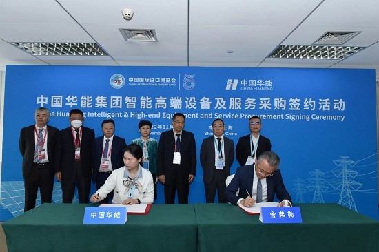 11月6日,中国华能集团有限公司在第五届中国国际进口博览会上举办高端智能设备及服务采购签约活动,共签约14个项目,总金额近29亿元。集团公司党组成员、副总经理樊启祥出席签约仪式并致辞。