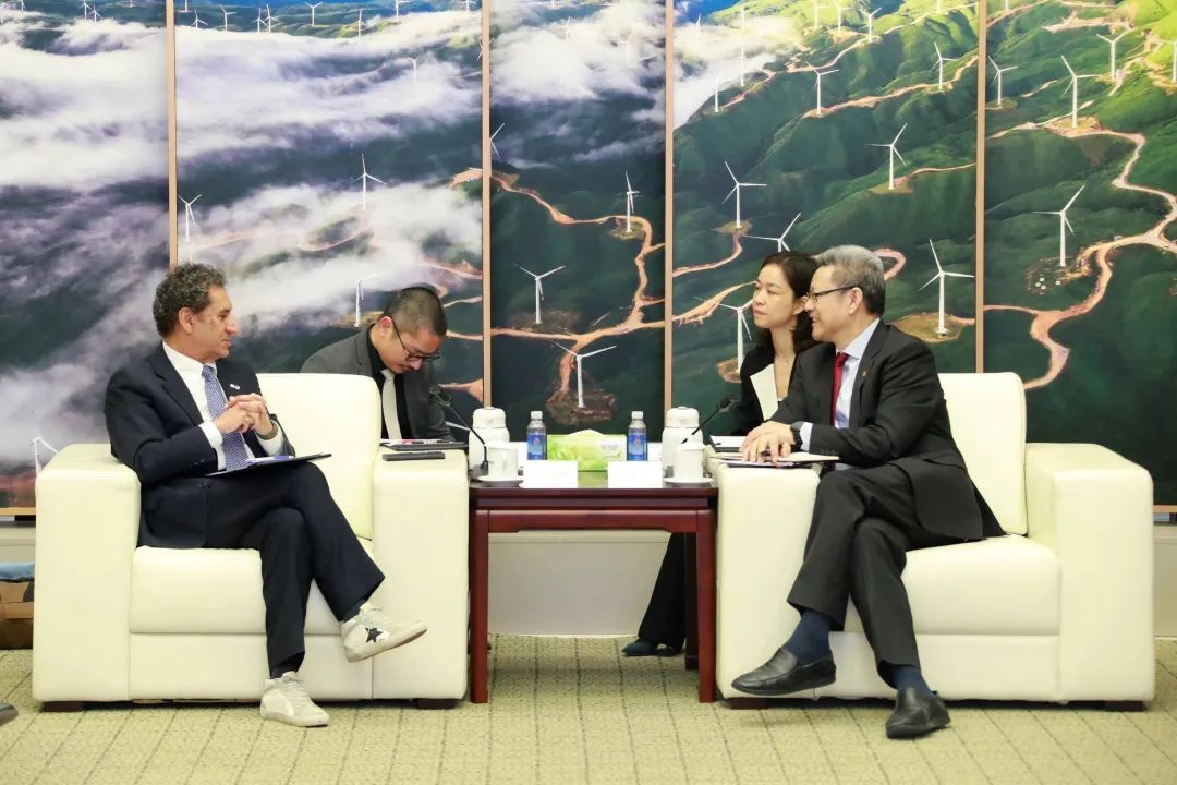 4月19日,国家电投党组书记、董事长钱智民在京会见辽宁省朝阳市委副书记、市长谢卫东,双方就进一步深化合作进行交流。