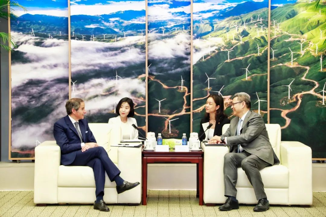 5月26日,国家电投党组书记、董事长钱智民在总部与国际原子能机构总干事格罗西举行会谈。国际原子能机构副总干事刘华,国家原子能机构秘书长邓戈,国家电投党组成员、副总经理卢洪早参加会见。