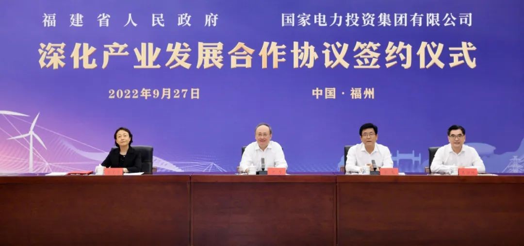 9月27日,国家电投与福建省人民政府通过视频方式签署深化产业发展合作协议。福建省委书记、省人大常委会主任尹力,福建省委副书记、省长赵龙,国家电投党组书记、董事长钱智民出席并见证签约。福建省委常委、常务副省长郭宁宁,国家电投党组成员、副总经理徐树彪分别代表双方签署协议。福建省委常委、省委秘书长吴偕林,国家电投党组副书记、董事栗宝卿出席活动。
