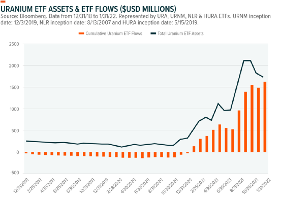 在技术和安全措施的重大改进的帮助下,核电正在逐渐摆脱与之相关的困难。支持核能的需求在发展中国家更为强烈,亚洲是新反应堆建设的主要枢纽。ETF市场和对冲基金等机构投资者也发出看涨铀价动态的信号。