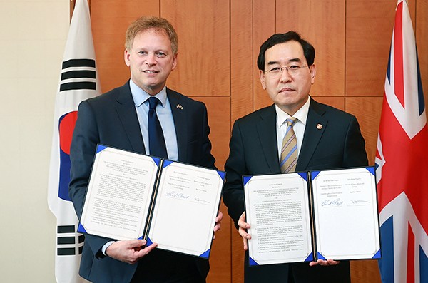 4月10日上午,韩国产业通商资源部长官李昌洋在首尔中区的乐天酒店与英国能源安全大臣格兰特·沙普斯会晤,双方发表了关于加强清洁能源领域交流与合作的联合宣言。