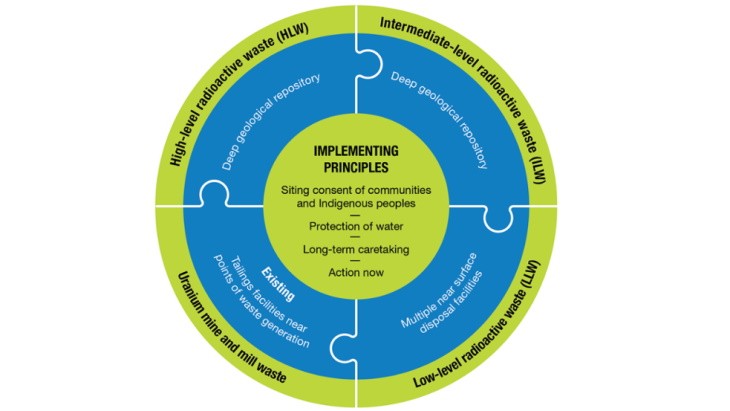 除废旧核燃料外的放射性废物战略将使加拿大核废物管理组织(NWMO)负责在深层地质处置库中处置中放废物和非燃料高放废物。低放废物将在近地表处置设施中处置。