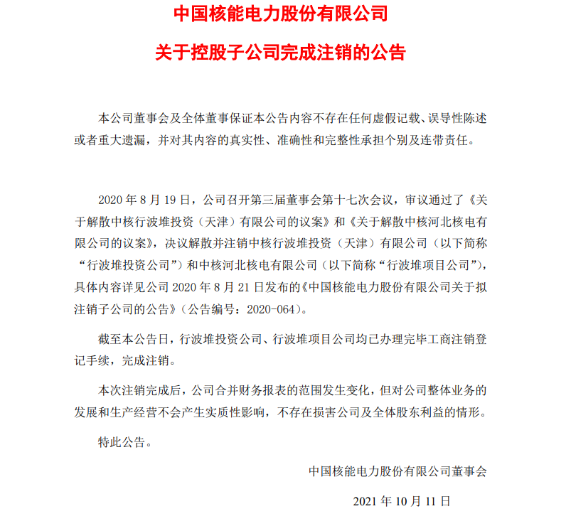 中国核电最新公告:前三季度净利65.07亿元 同比增长29.73%