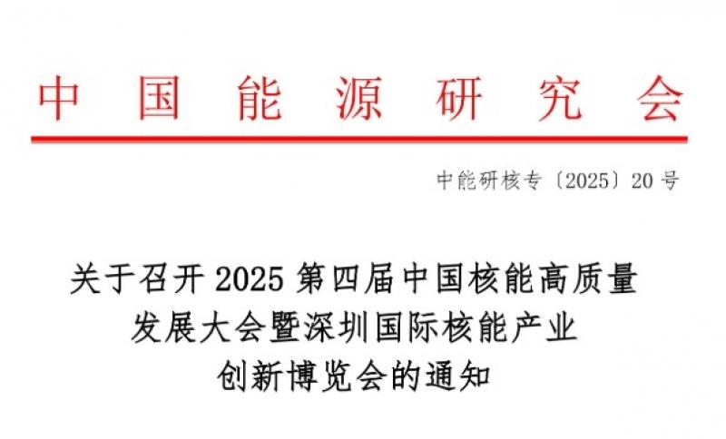 关于召开2025第四届中国核能高质量发展大会暨深圳国际核能产业创新博览会的通知