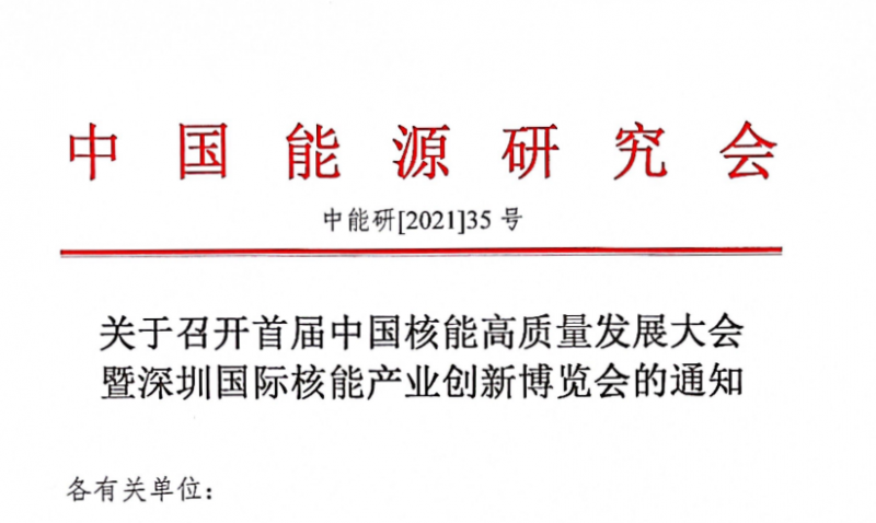 关于召开中国核能高质量发展大会暨深圳国际核能产业创新博览会的通知