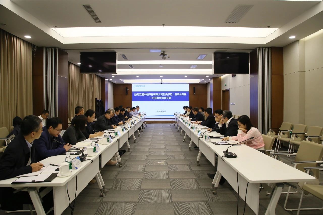 11月24日上午,中核环保有限公司党委书记、董事长万钢,总经理、党委副书记赵翼鑫一行赴中国原子能工业有限公司(以下简称“中国原子能”)交流调研。中国原子能党委书记、董事长薛小刚主持座谈会议。