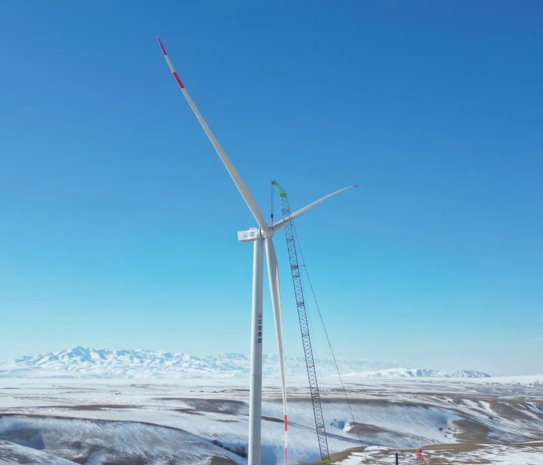 中核集团首个百万千瓦风电源网荷储一体化项目顺利完成首台风力发电机组吊装