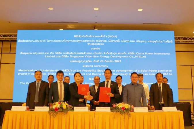 2023年7月24日,中电国际及合作方在老挝首都万象与老挝政府计划与投资部、能源与矿产部以及乌多姆赛省政府签署了乌多姆赛新能源基地项目合作备忘录。