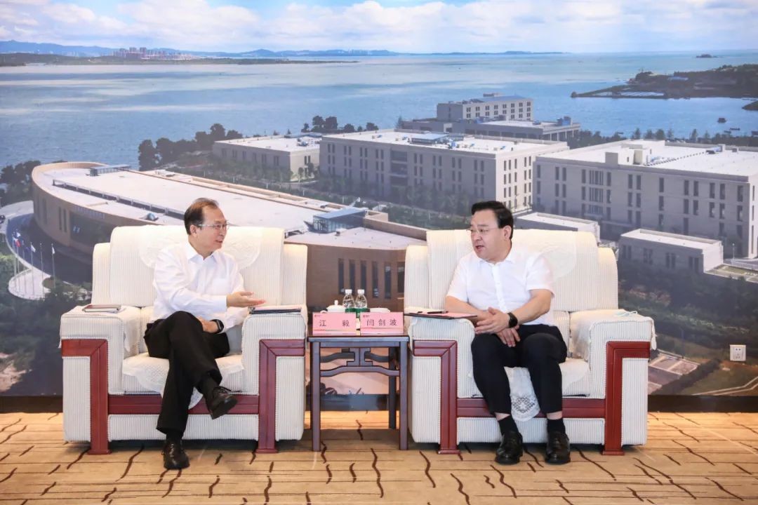 8月26日,国家电投董事、总经理、党组副书记江毅在国和一号仿真国际交流中心会见山东省威海市委书记闫剑波,就核能产业链、海上风电产业链、先进核能创新中心和“核动未来”科技示范工程建设等进行交流。国家电投党组成员、副总经理卢洪早参加会见。