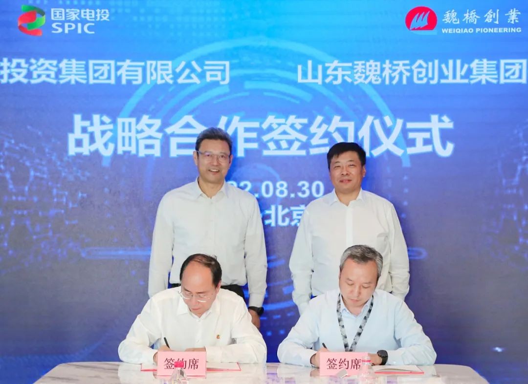 8月30日,国家电投与魏桥集团在京签署战略合作框架协议。国家电投党组书记、董事长钱智民,魏桥集团董事长张波出席并见证签约。国家电投总经理助理兼发展部主任侯学众,魏桥集团董事、副总经理张敬雷分别代表双方签署协议。