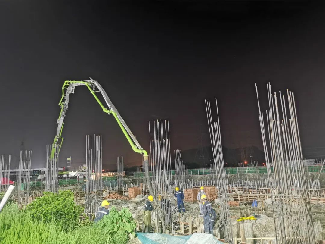 8月1日22时30分,在田湾核电蒸汽供能项目海水淡化子项目现场,一管混凝土从泵车输送管道喷薄而出,快速注入化水厂房地梁与基础承台模板中,标志着海水淡化项目化水厂房地梁与基础承台混凝土浇筑正式开始,田湾核电蒸汽供能项目海水淡化子项进入全面土建施工阶段。