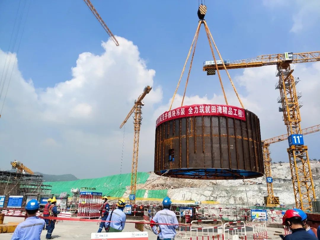 田湾核电8号机组堆腔竖井筒体(下部)顺利吊装就位