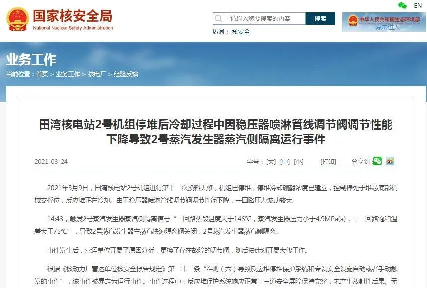 国家核安全局近日印发《田湾核电站6号机组运行许可证颁发前综合检查报告》,报告显示,距离装料,田湾还有13个问题要整改。