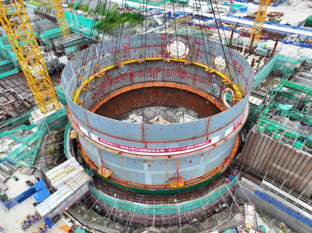 5月25日7时48分,三门核电4号机组核岛屏蔽厂房墙体钢板混凝土结构(SC)第13-14层模块吊装就位,为4号机组安全壳顶封头就位里程碑节点实现打下基础。本次吊装的SC13-14层模块充分秉承应模尽模理念,进一步提升了屏蔽厂房建造效率。该模块由两层24个子模块拼装而成,整体呈圆筒型,外径约40米,高约7米,吊装重量超过600吨。相比3号机组的单圈工艺,4号机组SC13-14层采用双圈拼装、吊装工艺,模块化程度更高,可减少一次SC模块整体运输、吊装,减少一圈SC现...