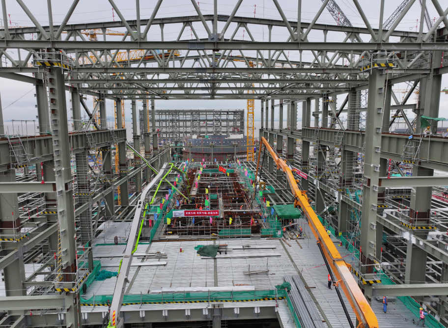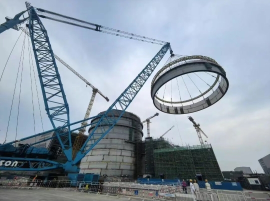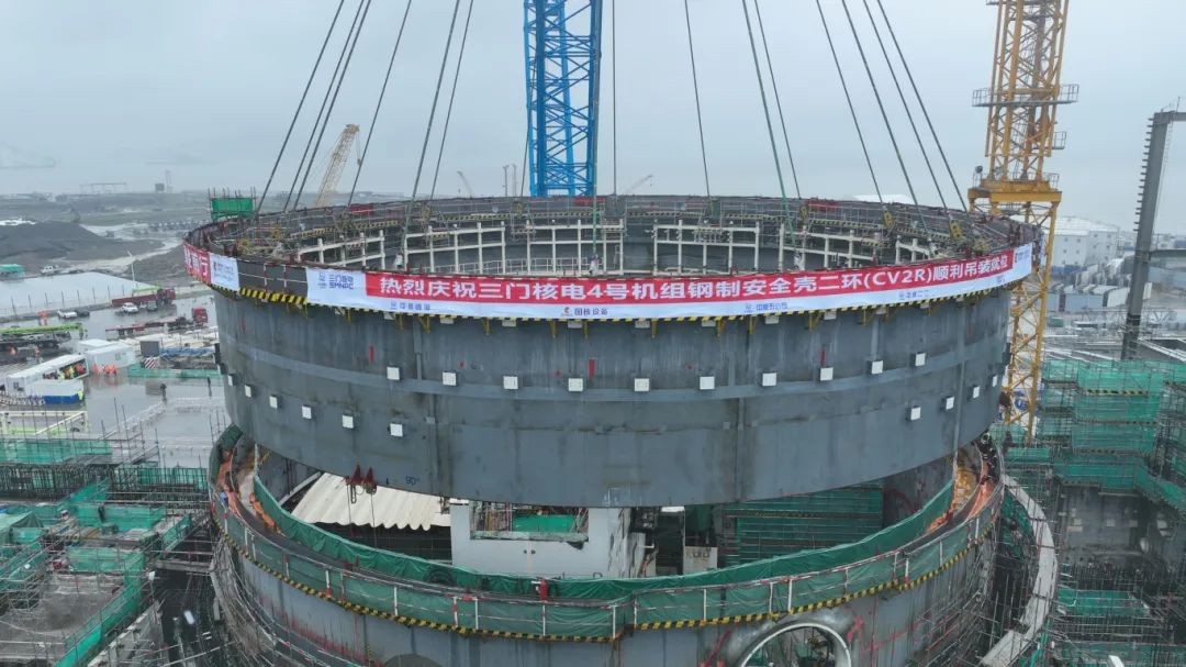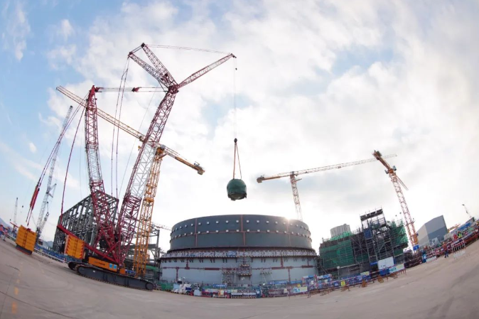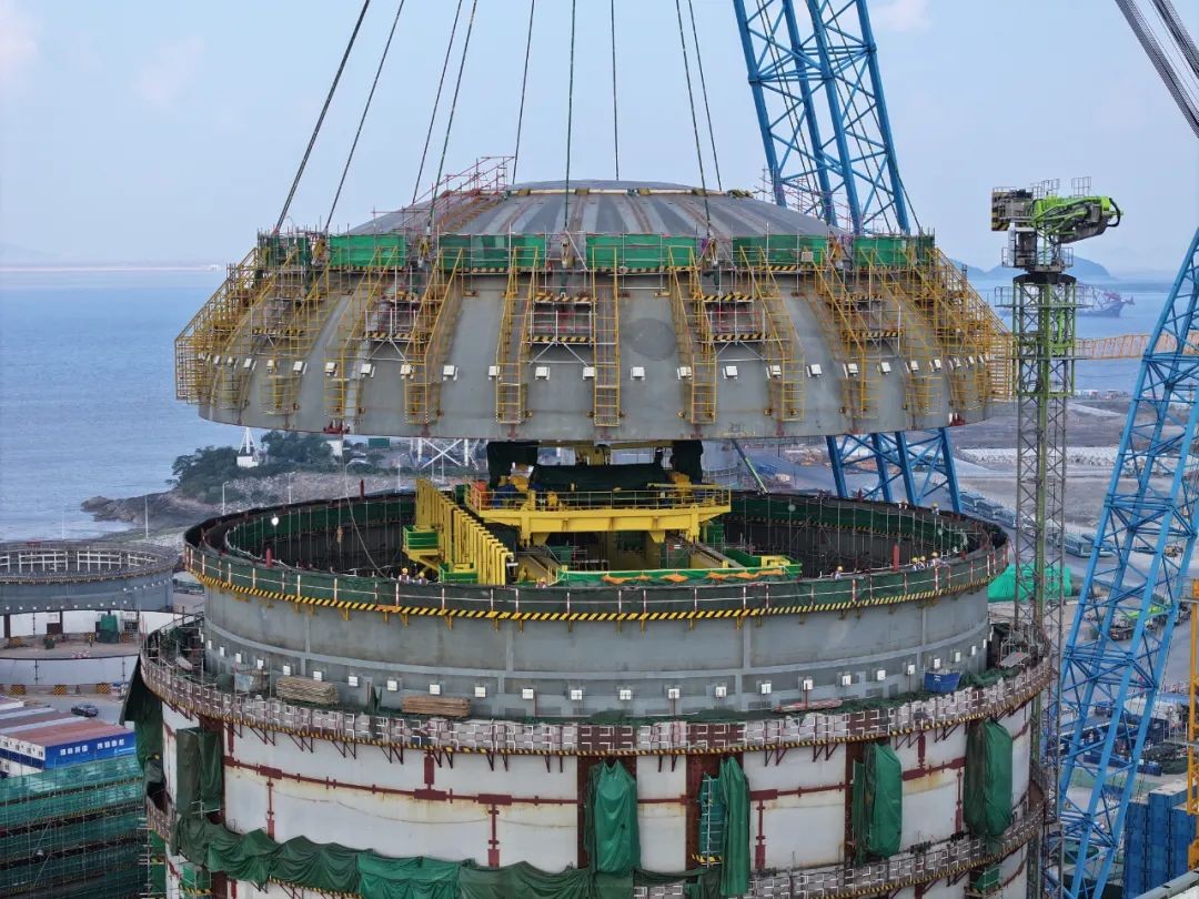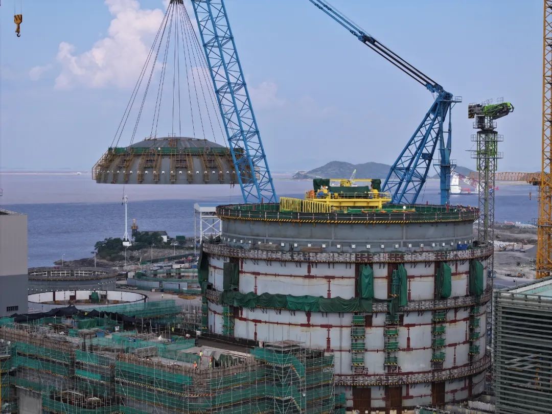 三门核电3号机组屏蔽厂房钢穹顶吊装就位