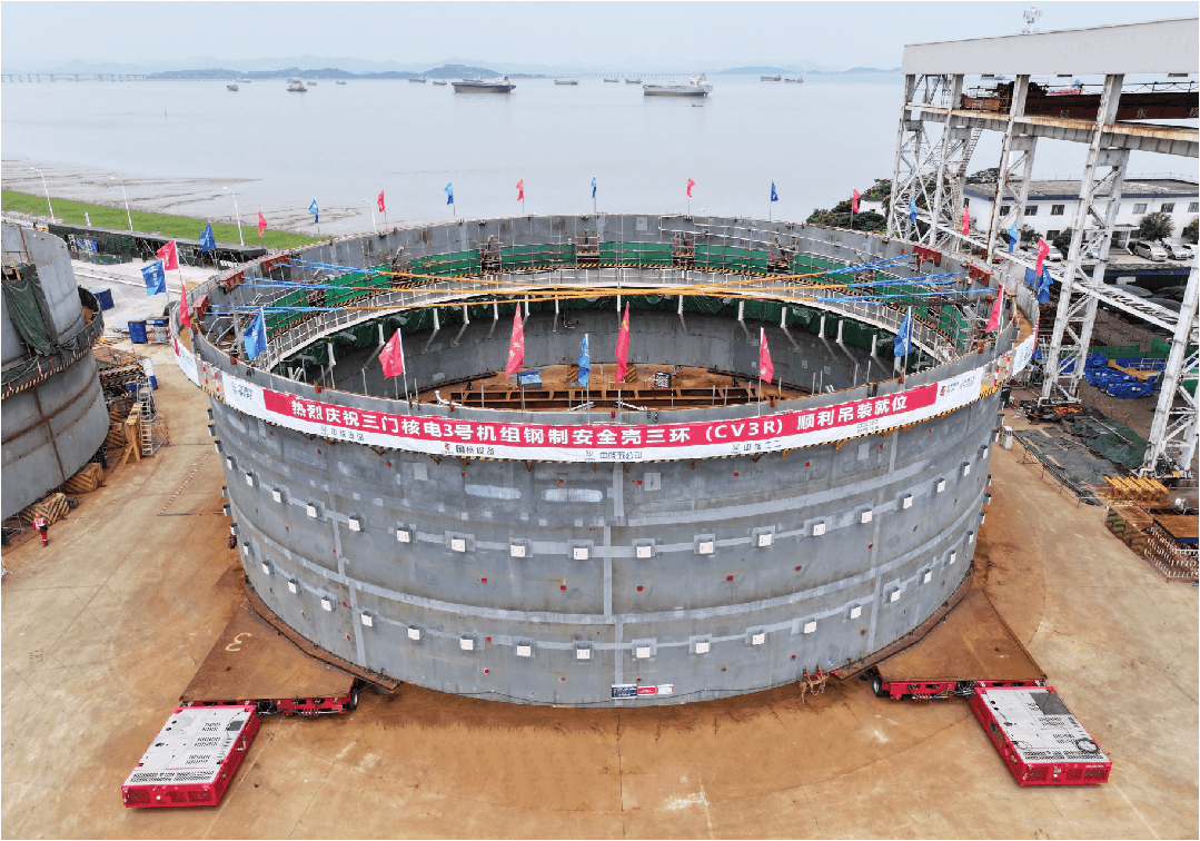 三门核电3号机组钢制安全壳筒体三环顺利就位