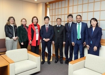 1月17日下午6点,外务省副相宫地卓真在日本接见了来访的5位国际原子能机构(IAEA)理事,分别来自厄瓜多尔、印度尼西亚、比利时、哥伦比亚和印度。