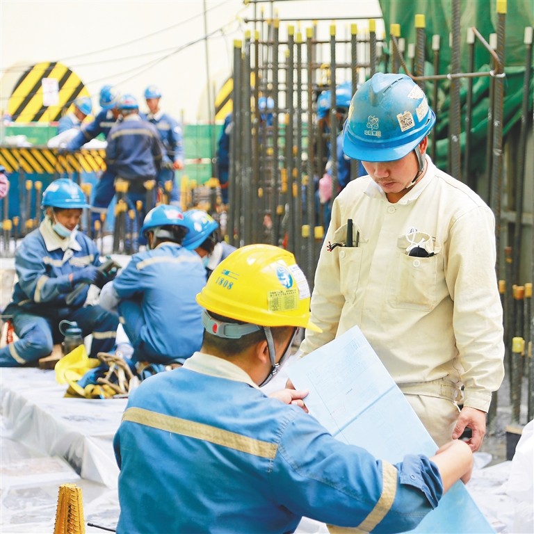 11月7日9时许,位于昌江黎族自治县海尾镇的海南昌江核电二期工程项目建设现场,敲打声从四面八方传来;抬头一看,只见几个巨型履带式起重机的吊臂高耸入云,起重机之下的圆筒形建筑就是昌江核电二期工程3号机组,周围钢筋密布。