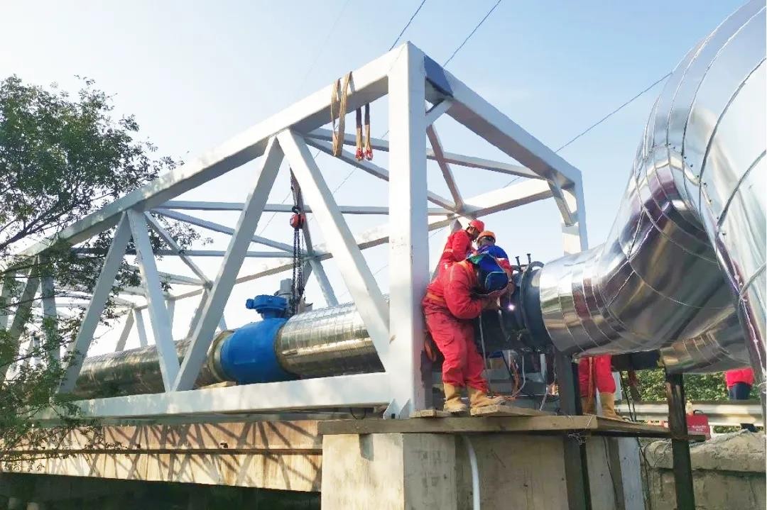 11月1日,核能供暖项目厂内、厂外段供热主管在杨核线白洋河桥实现成功对接,标志着核能供暖示范项目即将进入厂内外供热系统联合调试阶段。秦山核电总经理、核能供暖项目领导小组组长邹正宇在现场见证了这一重要节点的圆满完成。