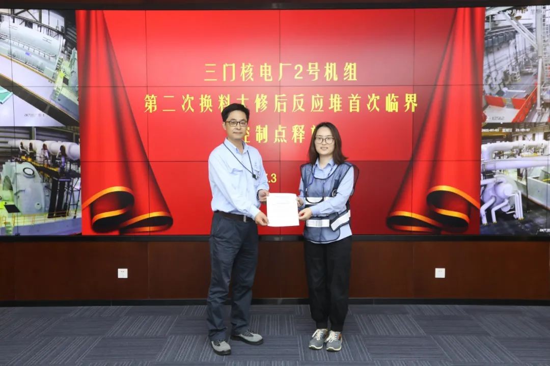 2022年7月3日21时50分,生态环境部华东核与辐射安全监督站(以下简称华东监督站)监督员在确认三门核电2号机组完成问题整改落实,机组状态符合临界启动条件后,向三门核电现场宣读了《关于确认三门核电厂2号机组第二次换料大修后反应堆首次临界控制点现场条件的通知》,7月4日凌晨,机组安全达到临界状态。